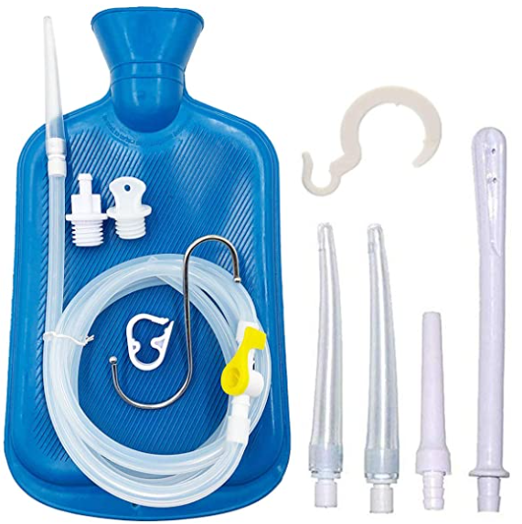 Let it out, repeat, let it out etc. Keep going for as long as it takes, but get into the position where you are relaxed (I stand up and just check my phone for messages and arrange tops for later so I’m not fixated on the douching and clamp up.) Get into different positions that work for you to get the water in well and beyond your second hole